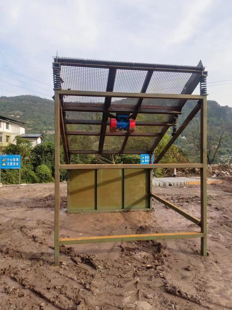 规格:长4.2米,宽1.6米,高3.2米,筛孔2.5cmo重量1.2吨弹簧厂300c,短250cm粗度16cm,内孔70cm。配380伏,1.1kw振动电机。
